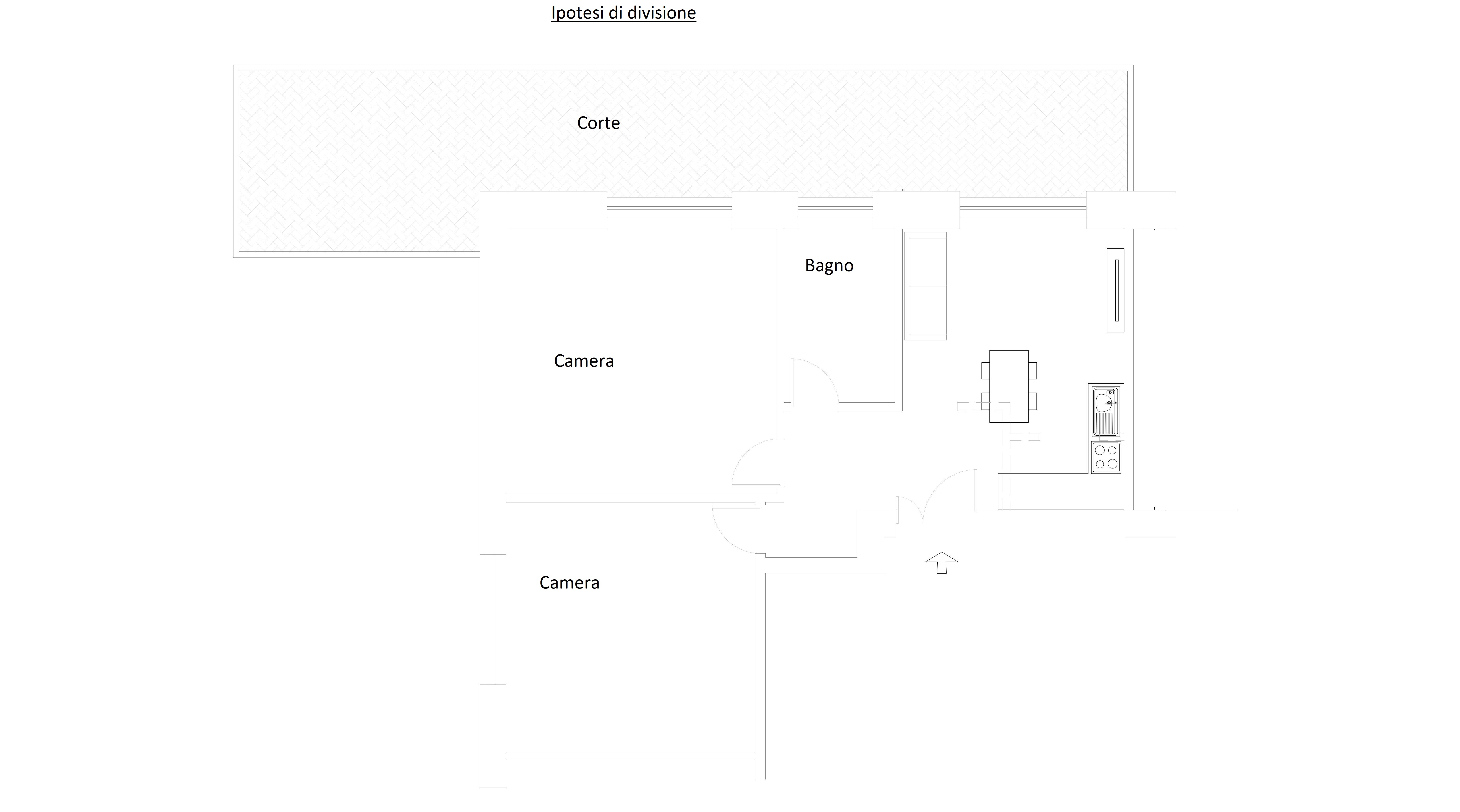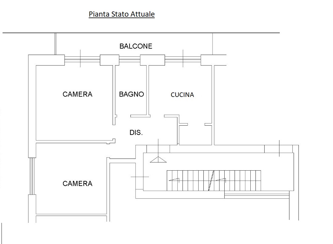 Gradevolissimo appartamento, posto al primo piano, composto da: ingresso, cucina abitabile, disimpegno, bagno, due ampie camere, balcone. Possibilitą di ricavare facilmente una nuova distribuzione interna, trasformando l'attuale cucina in soggiorno con angolo cottura e utilizzando le stanze entrambe come camere da letto.